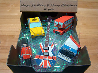 限定逆輸入販売のセールストークにつられて、早速MAKE CITY三都市セットをご購入いただいたユキコさんから、一足早めのクリスマスプレゼントが届きました。設計している本人も、撮影用に制作する時には150%拡大しないときれいに作れないこのポストカード、まさか本当に作る人がいるとは思わなかった。最近の傾向からすると、ペーパークラフトをある程度作り慣れた人たちは、どんどん小さいモノを作る方向に向かうんだろうか・・・?きれいにパッキングされたロンドン、パリ、ニューヨークの名物の数々、現物はいったいどなたへのプレゼントなんでしょうね。来年の初夏には次の三都市も発売予定です。いくら作ってもかさばらないのがこのシリーズの良いところ、来年もよろしくお願いします。(2008/12/2)