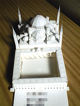 高校で世界史を教えるT代さんの毎年3学期のお悩みは、すでに進路が決まった生徒たちの身がいまいち授業に入らないこと。そりゃそうかもな、一番遊びたい時期だもんなぁ。クラス中がそうならまだ手の打ちようはあるんでしょうが、受験を控える生徒と進路が決まった生徒が入り混ざるのが悩みの種。僕の高校時代の先生は、あからさまに「近所の茶店でサボってていいからみんなの邪魔すんな!」オーラを発散してましたが、今の時代そういうわけにもいかないんでしょうね。そんなわけでT代さんが思いついたのがペーパークラフト。世界遺産ペーパークラフトであれば、一応世界史にもからんでるし、手先に集中してればおしゃべりも忘れます。何人かでグループを組んで作ってくれた、フィレンツェの大聖堂とブルーモスクの写真を送っていただきました。先輩の作った作品を2年生の教室で見せたところ、みんな興味津々で見てくれたそうです。今後も毎年3学期の恒例行事にしてやってくださいね!(2009/4/12)