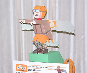 去年12月のNHKの放送を見てキットを申し込んでいただいた江戸川区のKさんから、完成写真を送っていただきました。お正月に遊びにきたお孫さんに見せたところとっても喜んでもらったそうで、あげるつもりまではなかったのに持っていかれてしまったそうです、ハハ。もったいないような、本望のような、複雑な思いだったんじゃないかと推察いたします。それにしてもきっちり作っていただいてますねー。お年玉かわりにペーパークラフト、来年からも是非よろしくお願いします。(2006/1/10)