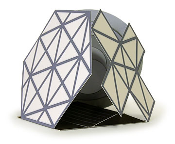 現代の若手建築家に最も影響を与えた建築家といわれるレム・コールハースと、プラダによる最新プロジェクトである、この「トランスフォーマー」。ロボットになったりリベンジしたりはしませんが、正四面体を基本に作られた高さ20メートル余りのパビリオンを展示プログラムごとにゴロゴロ転がして、さっきまで床だったところを壁にして、壁面の映写用のブースが今度は展示台になり…、とにかく建築の既成概念をくつがえしてしまう、大変現代建築的で前衛的で形而上学的な作品であります。現代建築的で前衛的で形而上学的なものを文章だけで伝えるのはなかなか大変ですし、写真を見ても今ひとつ分かりにくいかと思いますが、実際に作ってみれば一瞬で理解できるのが、立体物の良いところ。本誌の記事を読みながらご自宅の机の上で、ぜひゴロゴロ転がしてみてください。