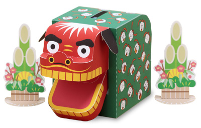 一昨年の「空飛ぶペンギン」、昨年の「お留守でワン」に引き続き、ベネッセの進研ゼミ小学講座・チャレンジ3年生の「なんで!?本」1月号に、めでたい付録がつきました。チャレンジのキャラクター、コラショ柄の風呂敷(?)を身にまとった、「コラショししまい貯金箱」。もちろん抜き型入りで、ペンギンよりはずいぶん簡単ですから、30分もあれば完成できるのではないかと思います。