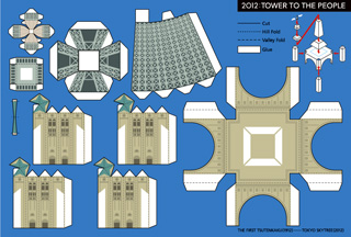 例年にも増して何が何だか分からないというご意見が多かった今年の年賀状。僕もネタ探しするまで全くその存在を知らなかった「初代通天閣」なのでした。1912年に建築されたこのタワーは当時は東洋一の高さを誇ったそうで、そのちょうど100年後に世界一の電波塔、東京スカイツリーが完成するってのも何かの縁かと思いモチーフに選びました。タイトルの「Tower to the people」ってのもお問い合わせがありましたが、これはジョン・レノン「Power to the people」のもじりですね。一人一人の力がより重要になりそうな一年です。