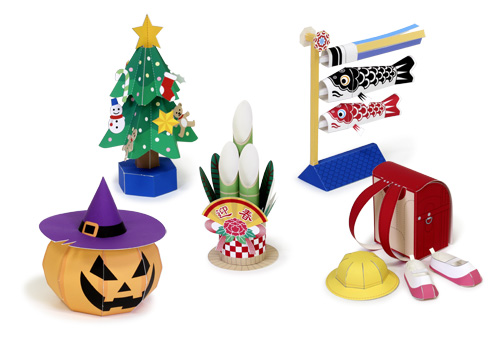 大勢のクリエイターさんが10年以上かけて積み重ねてきた、おそらく数千に及ぶテンプレートに加えて、参加初年度の僕は定番の季節のアイテムを5点制作しました。いずれも説明図込みでA4サイズ1枚の簡単設計で、リビングの棚やデスクトップに飾りやすい手のひらサイズ、ペーパークラフト初心者の方には取っつきやすいものではないかと思います。最新版は2013年12月6日に発売予定ですので、クリスマスカードや年賀状に悩まれている方は一度のぞいてみてください。毎年着実にアイテムを追加して、数年後にはペーパークラフト満載のラベルマイティと呼ばれるようになればと願っています!詳しい情報はこちらをどうぞ■