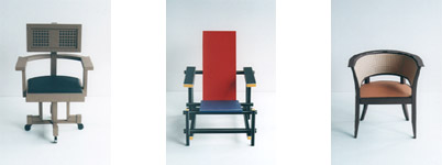 デンマークといえば家具。家具といえば椅子。というわけで、向こうで過ごす間に、僕はすっかり椅子のとりこになってしまいました。とはいっても一脚数万円から数十万円もする椅子を気軽に買うわけにはいきませんし、置き場所もありません。また、ドイツの家具メーカーVITRA社が出している有名なミニチュアコレクションは、模型とはいえ本物と全く同じ素材を使っているため、安いもので5千円、高いものになると数万円もしてしまいます。そこらの椅子なら軽く買えてしまうお値段です。それならいっそのこと紙で作ってしまえ、と思ったのがこのシリーズの始まりでした。完成品を家具好きの友人にプレゼントしたところ予想以上によろこばれ、こんなにうけるのなら、と二つ目からはできるだけ簡単な組み立て方にして、組立マニュアルを添えてペラで配り始めました(ホントは売ってました。違法です)。今のところ6点が完成しています。ちなみに、家具好きの方ならおわかりでしょうが、写真の2点はいずれもデンマークの椅子ではありませんので念のため。 こんなものに興味を持つのはデンマーク人と一部の物好きだけだろう、と思って帰国しましたが、予想外にも日本では、世界中の家具がショップにならび、インテリア雑誌が巷にあふれていました。ぼくが単に無知だったわけです。 |
