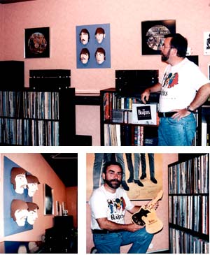 これがビートルズ親父(カメラマンの父親)です。僕も初めて見た。 画面では分かりづらいかもしれませんが、棚の中は全部ビートルズグッズ。親父の着ているTシャツもビートルズです。下の写真で親父が自慢げに見せてるのは、特製ギターケースに納まった、ビートルズメンバー腕時計(計4本)です。ご丁寧にlimited editionと書いてあります。何だよ親父、金持ってんじゃん。まさか時計4本あわせて500クローネで買ったってことはないだろ?ビートルズマスクは今のところ世界に二組しかないのに・・・。 |