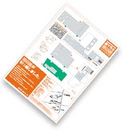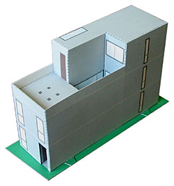 お世話になっているライターのMKさんが、事務所兼ご自宅を新築して引っ越すという話を年明けに聞き、「じゃ、せっかくだからペーパークラフト付きの移転案内状を作りましょうよ〜、ねぇねぇ」と、なにがせっかくなんだかよくわからない提案をしたらホントに実現してしまいました。新居は11月の頭に完成し、この案内状もそろそろ配られ終わった頃です。 封筒を開けるとA4シートを三つ折りにした案内状が出てきて、開くと上3分の2のスペースに物件の展開図が現れます。建築中の設計図を分けてもらって200分の1のスケールで作りました。建築家の方と何ヶ月もかけて練り上げたというだけあって、隅々まで考えつくされ非常に洗練された建物です。今回はデフォルメはせず、現物の構造をひたすら再現することに専念しましたが、設計図の寸法を写し取っていく作業は、建築家の思考の過程をトレースするようでたいへんエキサイティングでした。 実はノーギャラでもやりたい仕事だったのですが、30代前半で渋谷区に一軒家を建てやがるような人に、間もなく30代後半に突入する大田区の賃貸マンション住まいの男が気を遣ってもしかたないので、お金はしっかりいただきました。もうそろそろ引っ越しのバタバタも終わって落ち着く頃でしょうか。今度新築祝い持って遊びに行かせてください。あのスタイリッシュな器にいったいどんな家具をセレクトしたのか楽しみです。だっせー椅子なんかあった日には、建築家が許してもぼくは許しません。 設計・監理をされた『建築計画網・大系舎』さんのサイトに、MK邸の完成までのステップが詳細にレポートされています。うーむ、一件の家ってこんなに手間暇かけて建てられるものなのか、こりゃペーパークラフトより大変だ。あたりまえだよオイ。 |