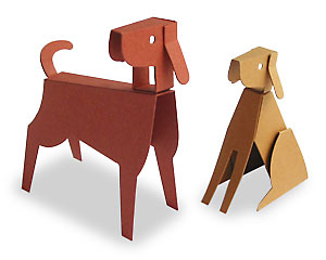 完全に公開するタイミングを逸してしまいましたが、昨年(2001年)一年間、世界遺産の仕事と平行しておこなっていた某宝飾販売店のウィンドウディスプレイ用に制作したペーパークラフトです。春夏秋冬、それぞれテーマを設定して各5〜8点程度のキットを設計しました。今回アップしたのは秋用に作った動物たちの一部。シリーズの中で一番気に入っているもので、ご覧の通り「かみのわんこ」の原型となったものです。