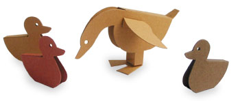 全国に二百以上ある販売店に完成品として納品する、という仕事の形態は今までに経験したことのないものでした。ぼくがおこした型紙を金型で抜いて、工場で何十人という方たちが手作業で組み立て、箱につめて全国に発送、という流れからいろいろな制約が生まれてきました。 1)パーツ数はなるべく少なく 2)のりしろはなるべく少なく、大きく。のり付けは両面テープ。 3)印刷には頼らない 4)組み立てはなるべくシンプルに、壊れやすい形はNG などなど |