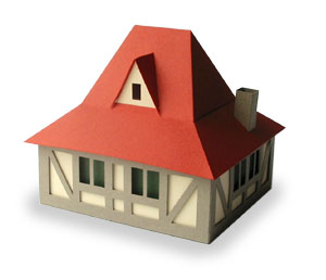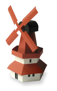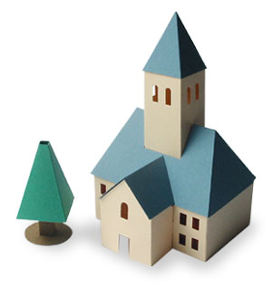 ウィンドウディスプレイ用のペーパーモデル、4回シリーズの締めは童話の中の建物でした。抜き型で凝って、組み立てはシンプルに、というコツがだんだんわかってきたので、前回の動物と比べるとちょっと複雑に見えますが、組立の基本は箱の積み重ねです。