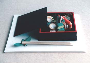 BACK GROUND これまた昔の作品です。 当時いったい何を考えて紙でおせち料理を作ろうと思ったのか、 全くもって謎です。 何か使い道あると思ったのかなー?うーん。