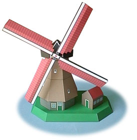 東京に10年以上住んでいながらも東京タワーに登ったことがないように・・・、こんな仕事をしていながらも他人が設計したペーパークラフトをまともに完成させたことがないように・・・、毎日電話をかけていながらもマイラインのしくみがいまだに理解できないように・・・ちょっと違うか、3年間住んでいたデンマークのご近所オランダへも「いつでも行けるからまた今度」と思っているうちに、とうとう行かずじまいになってしまいました。資料のビデオを見ていると、なんだかものすごくいいところみたいなので今とても後悔しています。こんなことなら年末に九州に行った時にハウステンボスの前を素通りするんじゃなかった。 現地には現在28機の風車が回っているそうです。28個作って並べると壮観だと思いますよ。 |